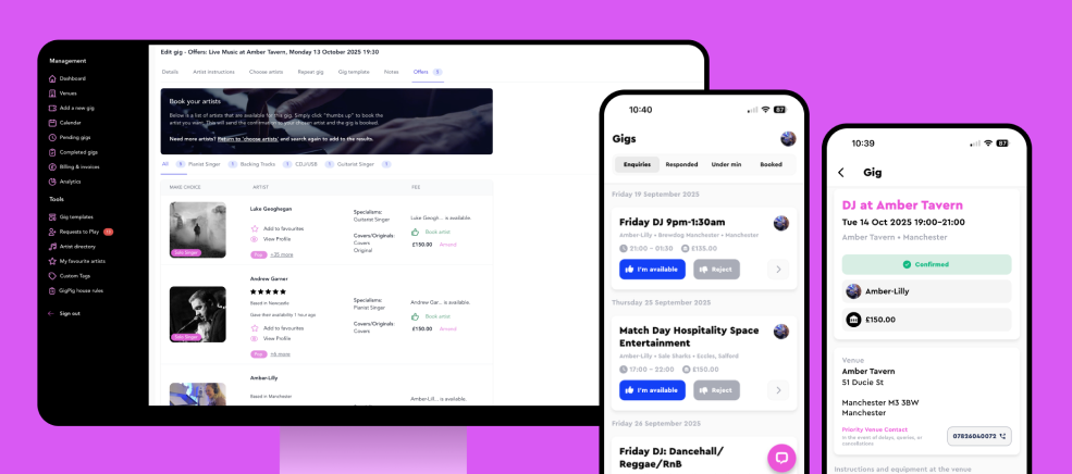 Book a gig nowOur world-class music marketplace seamlessly connects venues and bookers with the best musicians, DJs and entertainers.